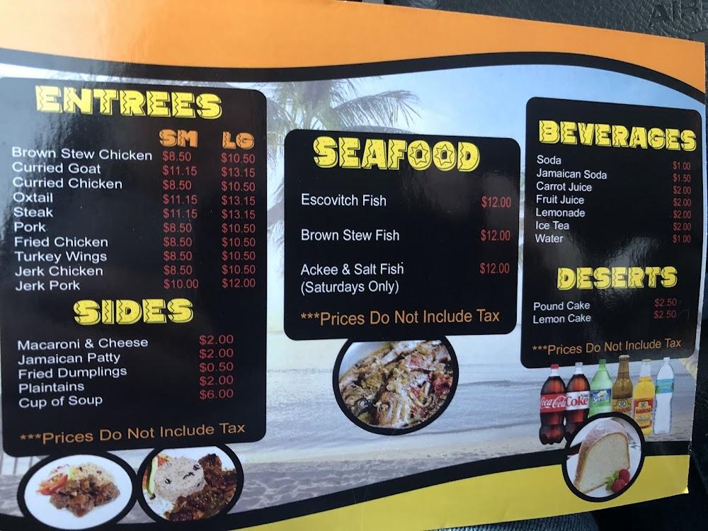 Beverages like Jamaican Soda and fresh Carrot Juice round out the offerings. Desserts such as Lemon Cake are popular choices to finish off a meal on a sweet note. Overall, the menu balances variety and authenticity, making it a hotspot for Caribbean cuisine enthusiasts.